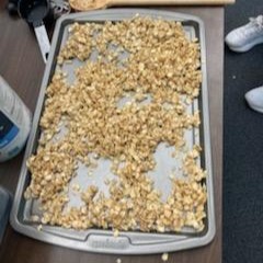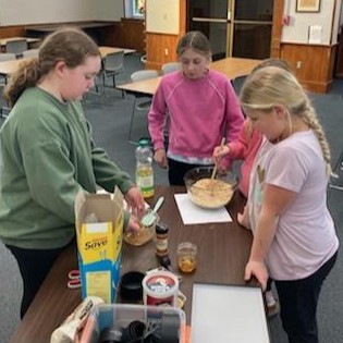 REPORT (October 30, 2025) Sweet treats from scratch were on the menu for this pre-Halloween session. The Cooking Crew made oven-baked donuts with glazed frosting and sprinkles, and vanilla pudding. Did you know there are pans designed for baking donuts instead of frying them? Now you do, and so do the kids and a bunch of parents and staff who had never seen them before either! Tasty donut goodness and yummy, smooth vanilla pudding? Yes, please and thank you! Great job kids! And congratulations, Deb Haverkamp, on successfully testing a new recipe while wrangling a group of wired up boys and ghouls post-Halloween school parties!