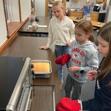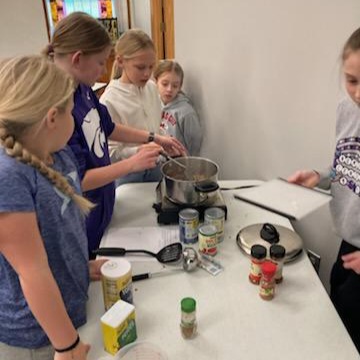 REPORT (November 20, 2025): Move over Mrs. Smith! Our Cooking with Kids Crew is taking over the rolling pin and doing pies from scratch – Petite Pumpkin Pies to be exact. Due to time limitations, Deb started them off with some pre-mixed and chilled dough for pie crusts, but the kids still got to roll out their dough and form it to their mini-pie pans. They whipped up the classic Libby’s can-label pumpkin pie filling and got their pies oven-ready. While those baked, the kids made their own dough for pie crusts to take home and chill in preparation for their own baking adventure! Great job with this seasonal classic, Kids! Special thanks to our very own Deb Haverkamp for planning and delivering yet another great installment of Cooking with Kids!